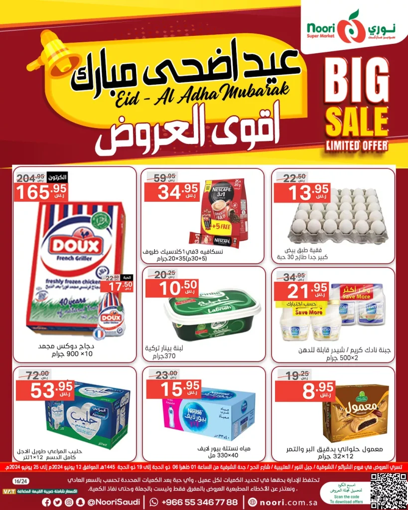 تعتبر عروض نوري هايبر ماركت الخميس 13 يونيو 2024 من أكثر العروض جاذبية وشمولاً للمستهلكين في المملكة العربية السعودية. في فترة عيد الأضحى المبارك، يقدم نوري هايبر ماركت تخفيضات كبيرة على مجموعة واسعة من المنتجات الغذائية الأساسية والضرورية التي تلبي احتياجات الأسرة بأفضل الأسعار.
