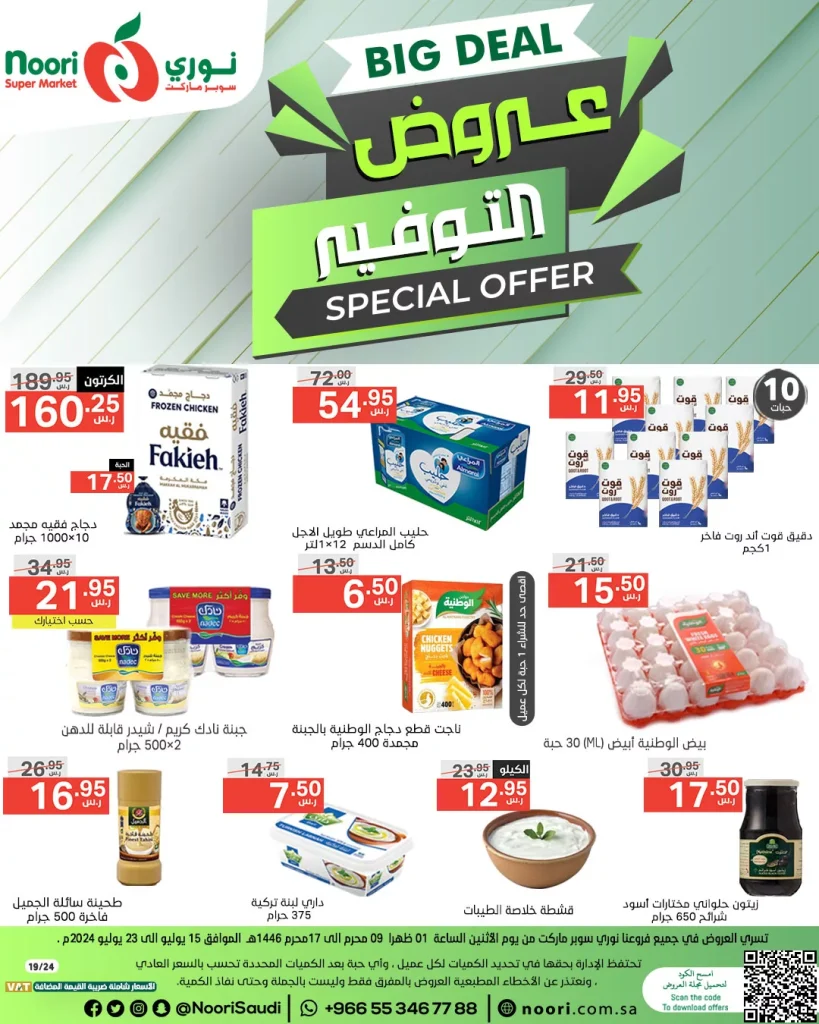عروض نوري هايبر ماركت الأسبوعية الاثنين 15 يوليو 2024 تأتي بتخفيضات هائلة على مجموعة واسعة من المنتجات الغذائية والمنزلية. تشمل هذه العروض تخفيضات كبيرة على منتجات الألبان مثل الحليب طويل الأجل واللبنة والجبن، بالإضافة إلى منتجات الأطعمة المجمدة مثل الدجاج واللحوم والأسماك.