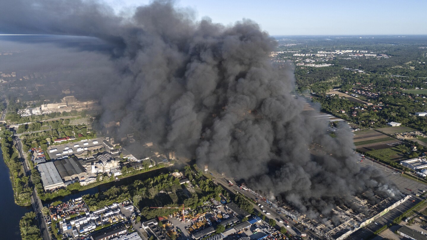وشوهدت أعمدة ضخمة من الدخان الأسود تتصاعد فوق المنطقة الشاسعة. وقالت إدارة الإطفاء إن أكثر من 80% من مجمع التسوق Marywilska 44 احترق في منطقة بيالوليكا في وارسو، وأن السقف انهار.