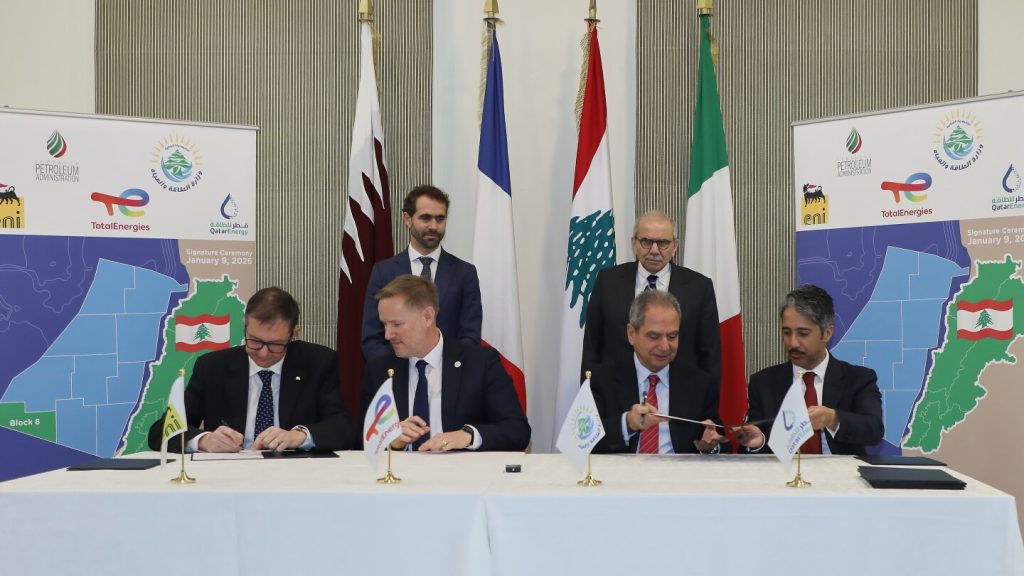 تم توقيع الاتفاق في مقر الحكومة ببيروت بحضور وزير الطاقة اللبناني جو صدى وممثلي الكونسورتيوم الدولي. وتنص الاتفاقية على أن يبدأ الكونسورتيوم بمسح زلزالي ثلاثي الأبعاد في منطقة البلوك 8، بمساحة تقدر بـ 1200 كيلومتر مربع، وذلك لتقييم إمكانات الاستكشاف وتحديد المواقع الواعدة.