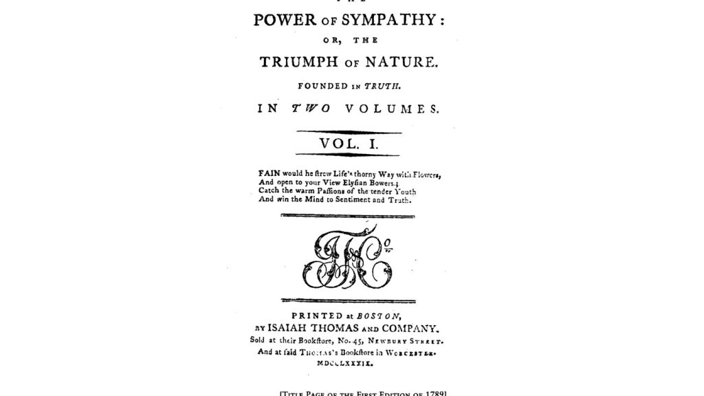 يُستشهد على نطاق واسع بكتاب “قوة التعاطف” لوليام هيل براون، الذي نشرته دار نشر إيزايا توماس وشركاه بشكل مجهول، باعتباره حدثًا بالغ الأهمية: أول رواية أمريكية.