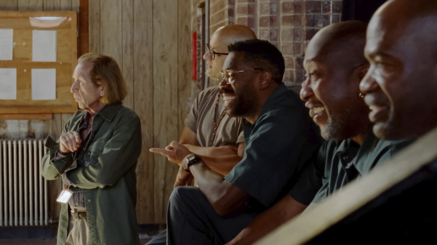 كولمان دومينغو، على اليمين، وكلارنس ماكلين في مشهد من فيلم “Sing Sing”. (A24 عبر AP)