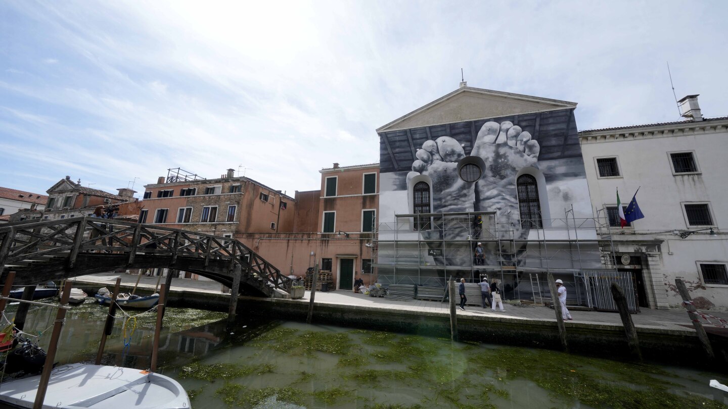 البندقية ، إيطاليا (AP) – تم رسم زوج من الأقدام العارية – القذرة والجريحة والضعيفة – على واجهة كنيسة سجن النساء في البندقية. إنه عمل الفنان الإيطالي ماوريتسيو كاتيلان وجزء من جناح الفاتيكان في بينالي البندقية عرض فني معاصر في تعاون مبتكر بين النزلاء والفنانين.