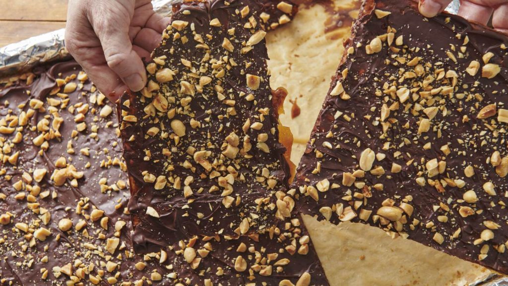الفرضية الأساسية: يمكنك صنع خليط بسيط من الكراميل/التوفي مع السمن المذاب أو الزبدة والسكر، مع قليل من الملح. يُسكب هذا الخليط ويُوزع على صفائح الماتزو، ثم يُخبز لزيادة كراميله وجعله يتماسك. تُرش رقائق الشوكولاتة فوق الماتزو الساخن المغطى بالكراميل، وتُترك لتنضج ثم تُدهن بطبقة علوية من الشوكولاتة المذابة، والتي تبرد وتتماسك.