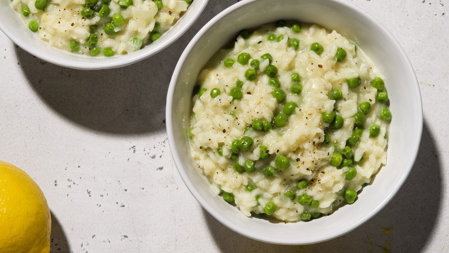 ريزوتو الليمون والبازلاء الخضراء
