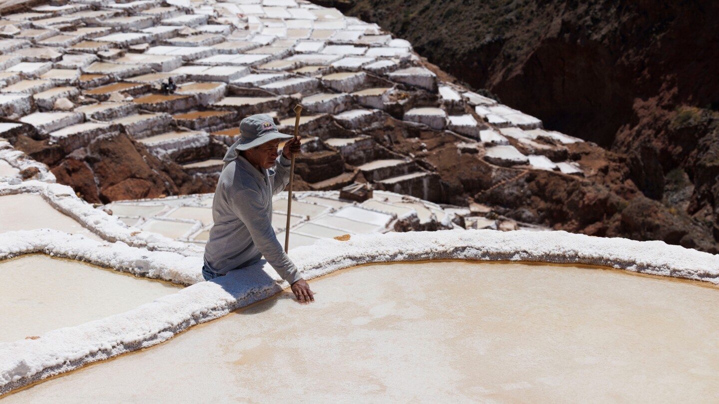 كوسكو، بيرو (AP) – عندما يخطط أوريل لجدول عمله في أواخر الصيف بالقرب من قريته في جبال البيرو، عادة ما يكون قراره الأول هو تحديد بركة الملح الخاصة بصديقه الذي سيعمل فيه في ذلك اليوم. وتماشيًا مع كلمة “آيني”، وهي كلمة قديمة في لغة الكيتشوا وتعني المساعدة المتبادلة، يتناوب القرويون على مساعدة بعضهم البعض في جمع الملح مرة واحدة شهريًا خلال موسم الجفاف.