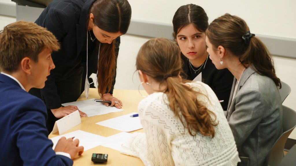 تناقش الفرق مجموعة من الحالات لأسابيع ، لكنهم لا يعرفون أيها سيُسأل عنها. بمجرد قراءة السؤال ، يتم منحهم بضع دقائق للمناقشة. وذلك عندما يتجول واحد أو اثنين من زملاء الفريق بشكل عام حول الطاولة لتتجمع. يهمس الشديد والخربشة الغاضبة.
