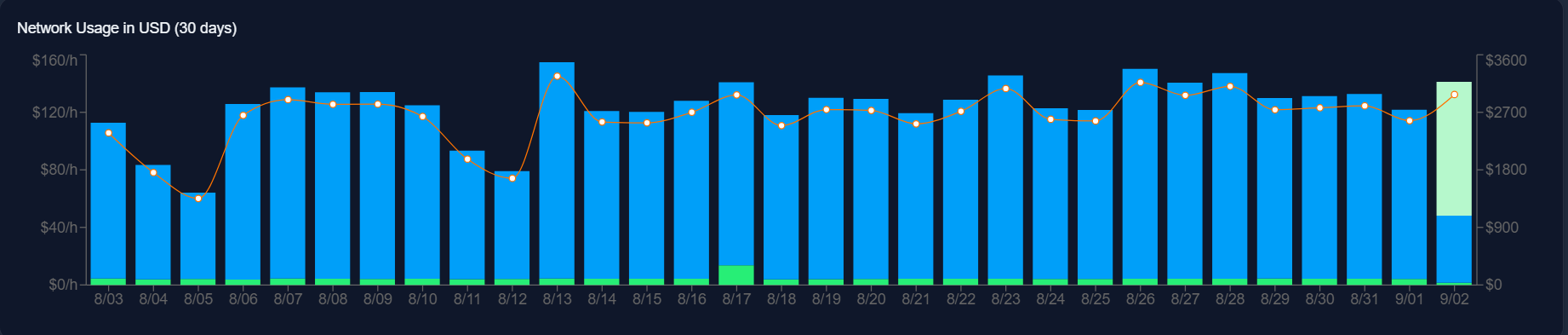 وفقًا لموقع Helium الإلكتروني، أظهرت خريطة Hotspot أن شبكتها نمت بشكل كبير ولديها المزيد من الإمكانات. وقد أظهر استخدام شبكة Helium Mobile في الأيام الثلاثين الماضية تقدمًا. اعتبارًا من 2 سبتمبر، من المتوقع أن يصل إجمالي الاستخدام اليومي إلى ما يقرب من 3175.62 دولارًا.