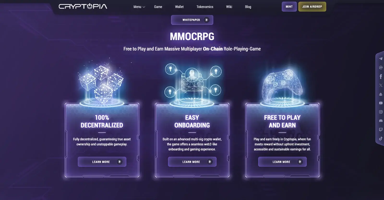 Cryptopia هي لعبة لامركزية بالكامل تعمل على سلسلة لا ترتبط بخوادم اللعبة المركزية. بفضل محفظة متعددة التوقيعات متكاملة، ونهج اللعب المجاني والربح، وحل خالٍ من الغاز على SKALE، يسمح هذا المشروع للمطورين بتبسيط عملية التسجيل.