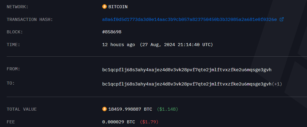 ومن الجدير بالذكر أن أحد أسباب الانخفاض الهائل قد يكون عمليات بيع الحيتان الكبيرة، كما أظهر حوت واحد قام بنقل 2300 بيتكوين بقيمة 142.24 مليون دولار إلى Kraken، وهي بورصة تشفير مشهورة، كما سجلته منصة تتبع المعاملات المشفرة. اركام انتلجنس.
