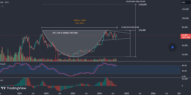 في غضون ذلك، مع استمرار عملة البيتكوين في التوحيد في نطاق سعري يبلغ ستة أشهر تقريبًا ويزداد إحكامًا، قد يكون الاختراق وشيكًا حيث يعمل النطاق مثل “المقبض” لنمط الرسم البياني “الكأس” لمدة ثلاث سنوات، كما أكد مؤخرًا محلل سوق العملات المشفرة الذي يعمل باسم مستعار. ميتاشاكل.