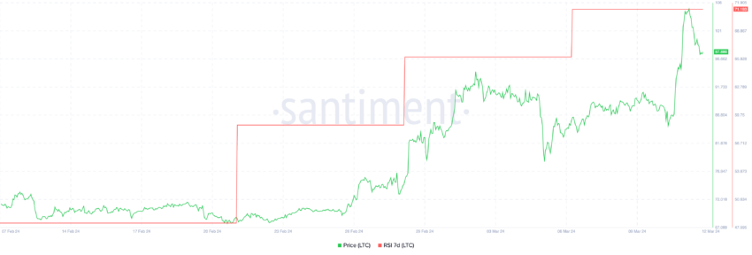 وصل مؤشر LTC RSI للتو إلى حالة ذروة الشراء