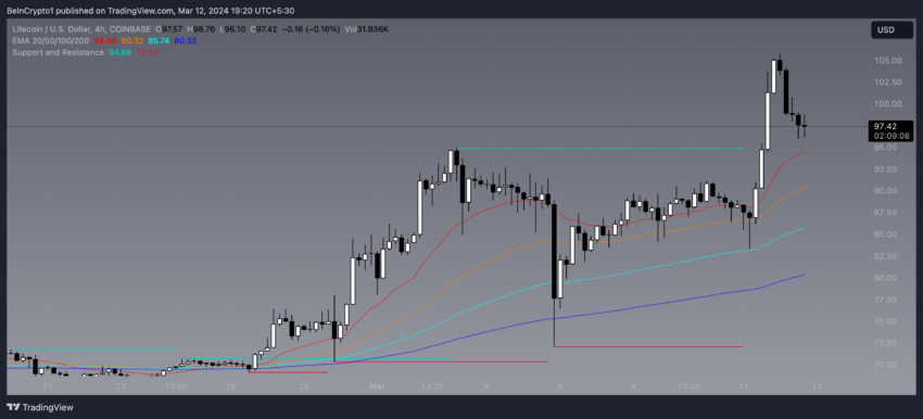 خطوط LTC EMA. المصدر: تريدنج فيو.
