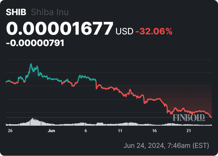 في الواقع، بعد التداول حول منطقة 0.00003 دولار أمريكي حتى منتصف أبريل، تباطأت حركة سعر Shiba Inu بشكل ملحوظ في الأسابيع القليلة الماضية، حيث انخفضت أولاً إلى ما دون المستوى الحرج عند 0.00002 دولار أمريكي، ثم عادت إلى أقل من 0.000017 دولار أمريكي، في أعقاب المشاعر الهبوطية لـ سوق التشفير.