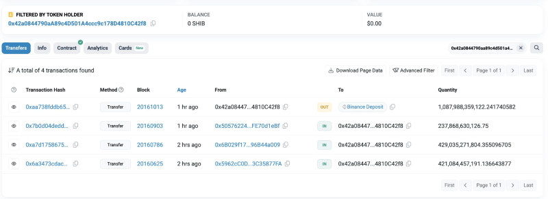 وفي الوقت نفسه، أحد العوامل التي يمكن أن تؤثر على سعر Shiba Inu في المستقبل القريب هو نشاط أكبر حامليها، أي الحيتان، مثل الإيداع الأخير لـ 1.08 تريليون من SHIB في Binance، إحدى أكبر بورصات العملات المشفرة في العالم، ستة أشهر بعد أن سحبت نفس محفظة التشفير هذا المبلغ.