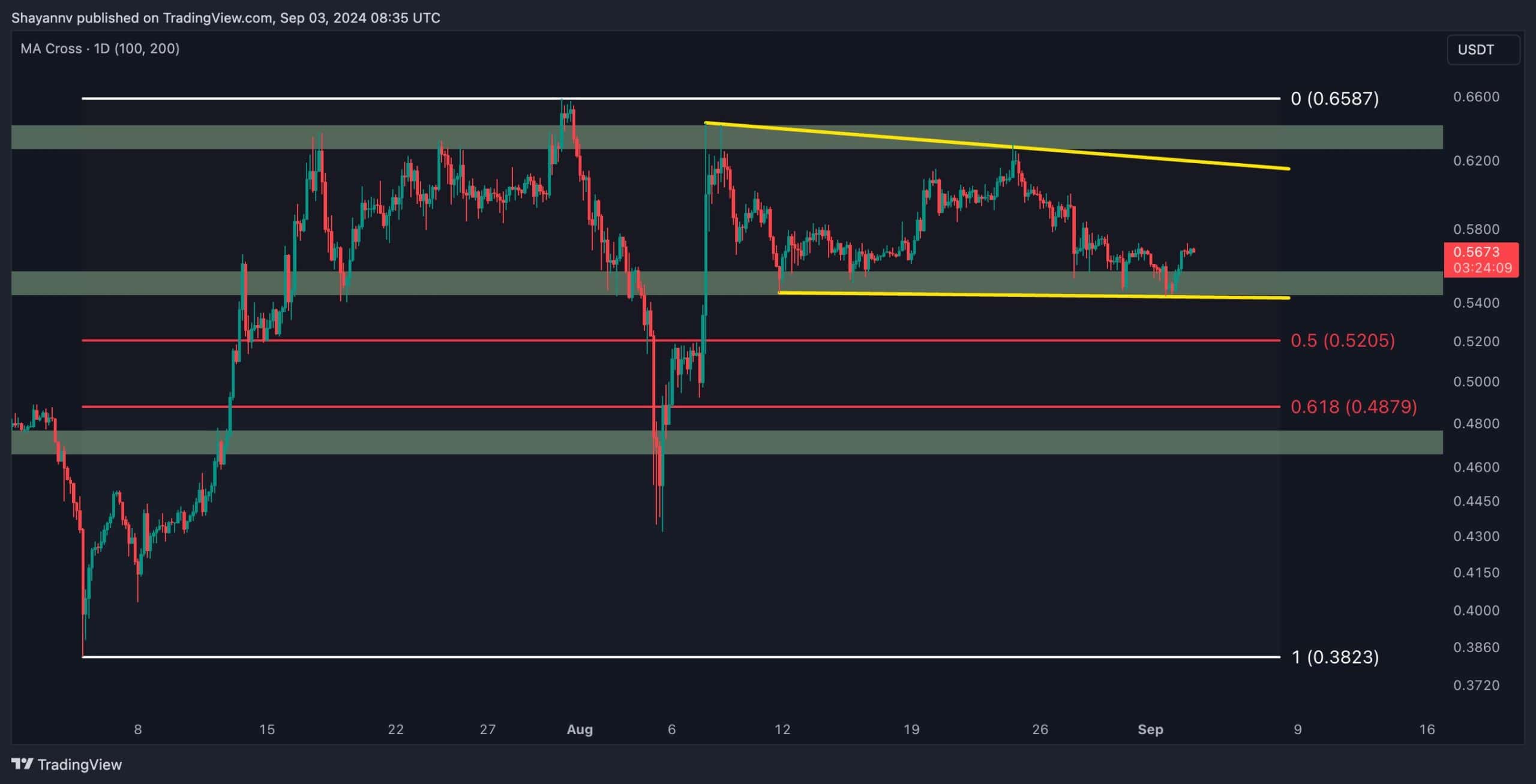أظهر الريبل انتعاشًا صعوديًا طفيفًا بعد مواجهة دعم كبير عند المتوسط المتحرك لمدة 200 يوم عند 0.55 دولار، مما يشير إلى زيادة متواضعة في الطلب في السوق.