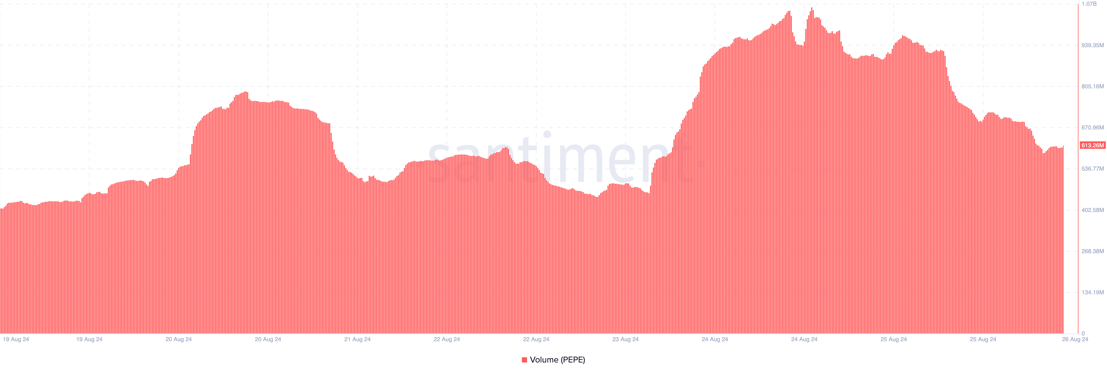 على الرغم من أن عملة PEPE شهدت بداية بطيئة هذا الشهر، إلا أن سعرها تمكن من تحقيق زيادة بنسبة 25%. ومع ذلك، فقد تضاءل الزخم الصعودي حول عملة الميم على مدار الـ 24 ساعة الماضية، مما أثار تساؤلات حول استدامة ارتفاعها الأخير.
