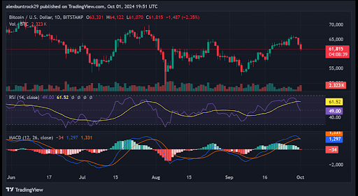 تشير المؤشرات الفنية إلى أن البيتكوين قد تستمر في مواجهة ضغوط البيع على المدى القصير. يشير مؤشر القوة النسبية (RSI)، الموجود حاليًا عند 49.00، إلى زخم هبوطي طفيف، وهو تحول ملحوظ من ظروف التشبع الشرائي الأخيرة عندما بلغ مؤشر القوة النسبية 61.52.
