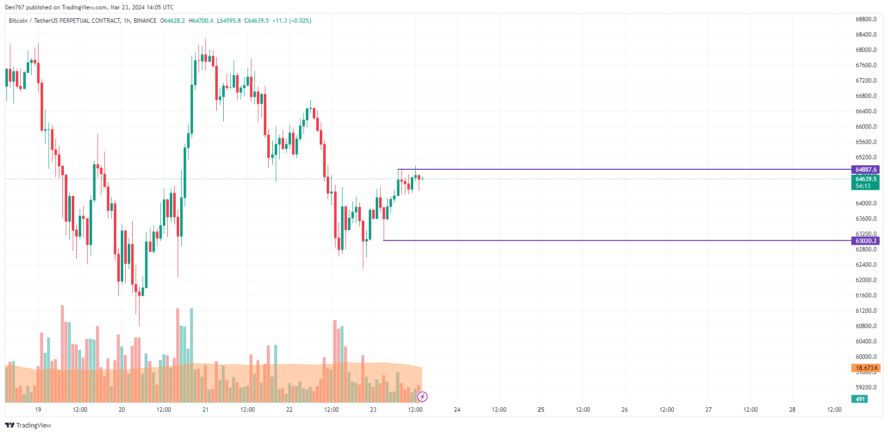 ويتم تداول بيتكوين بسعر ٦٤٦١٢ دولارًا في وقت النشر.