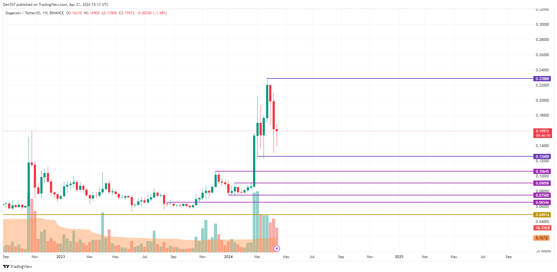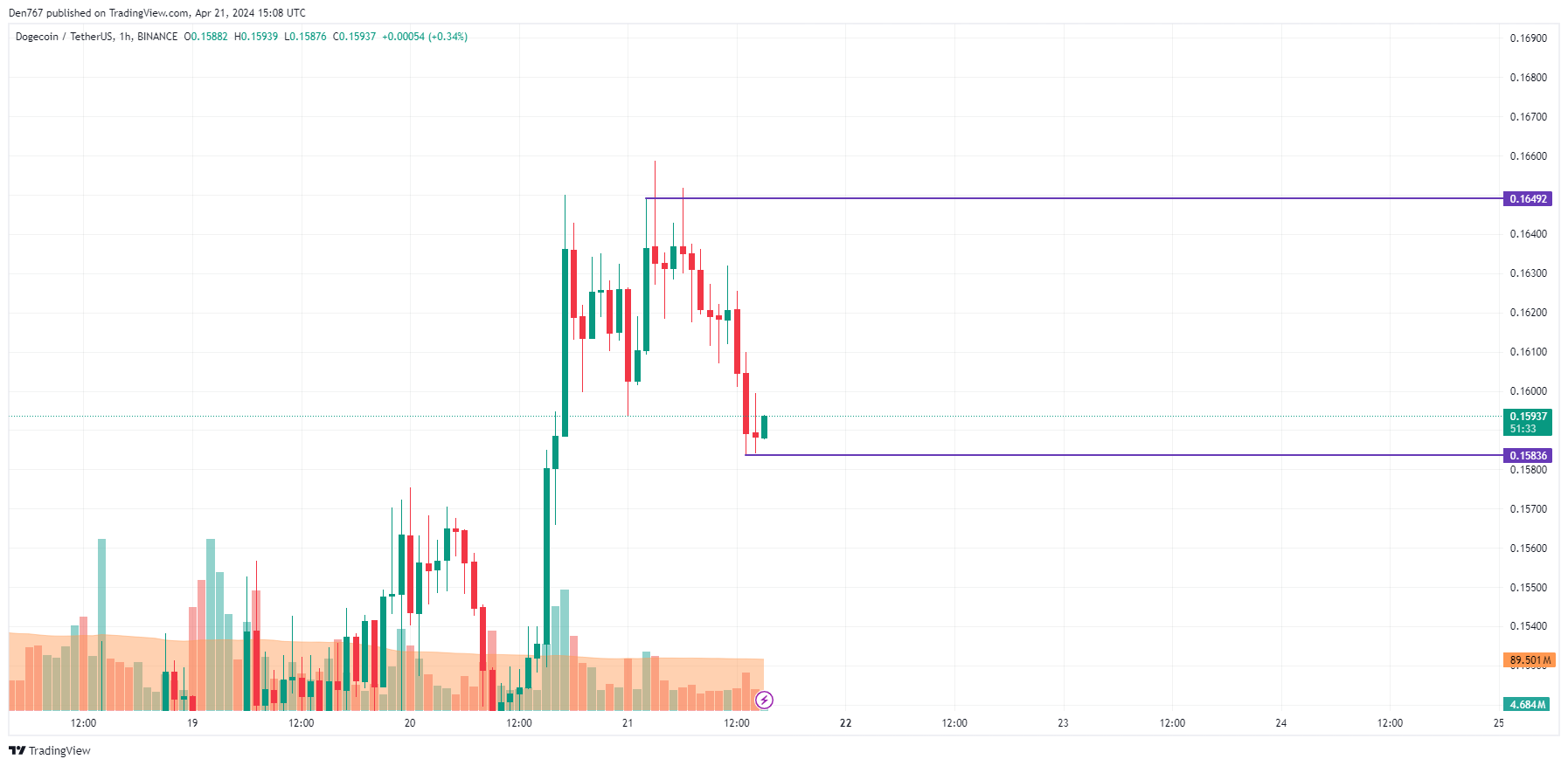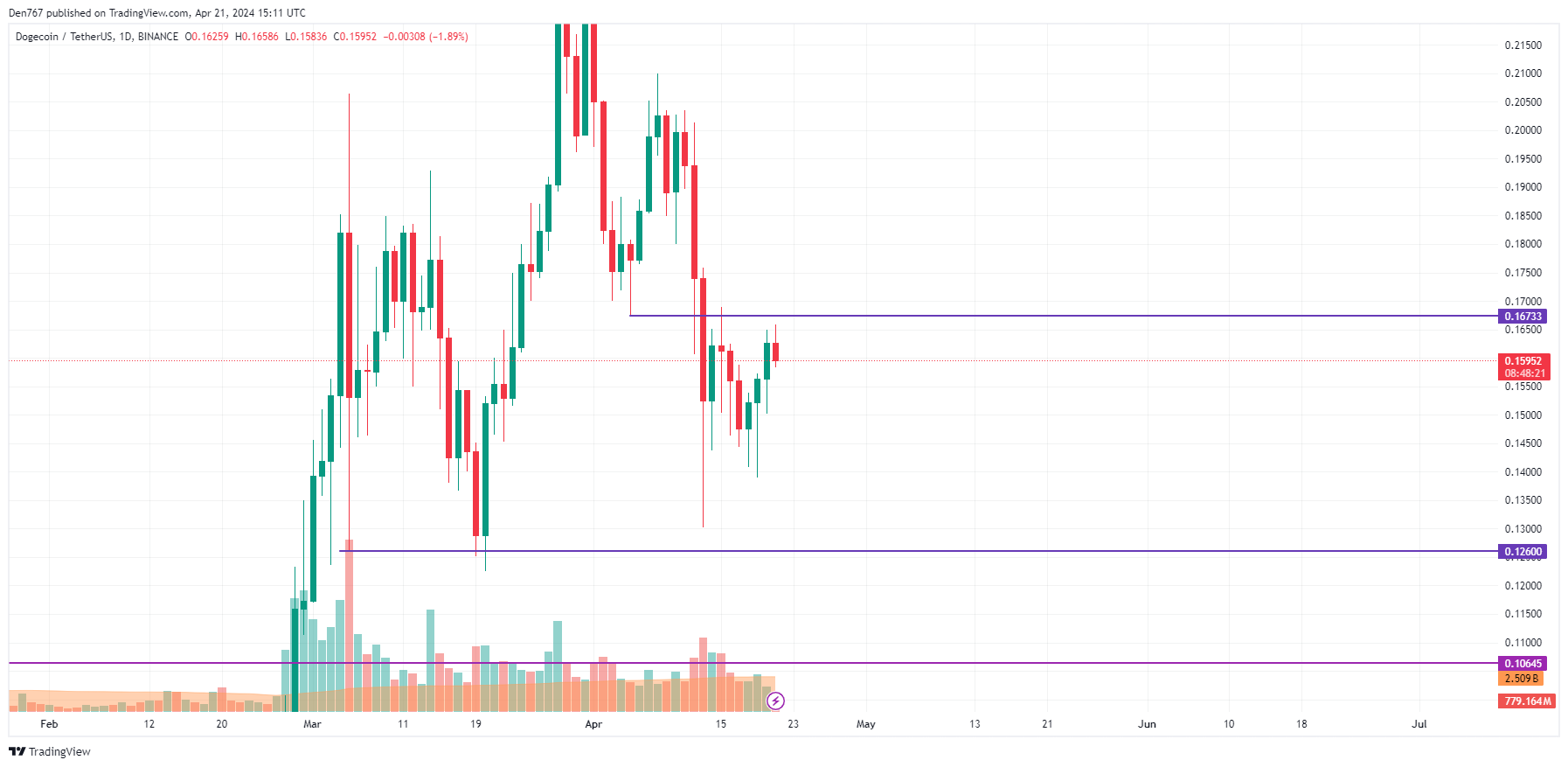 يتم تداول DOGE بسعر 0.1599 دولار في وقت النشر.
