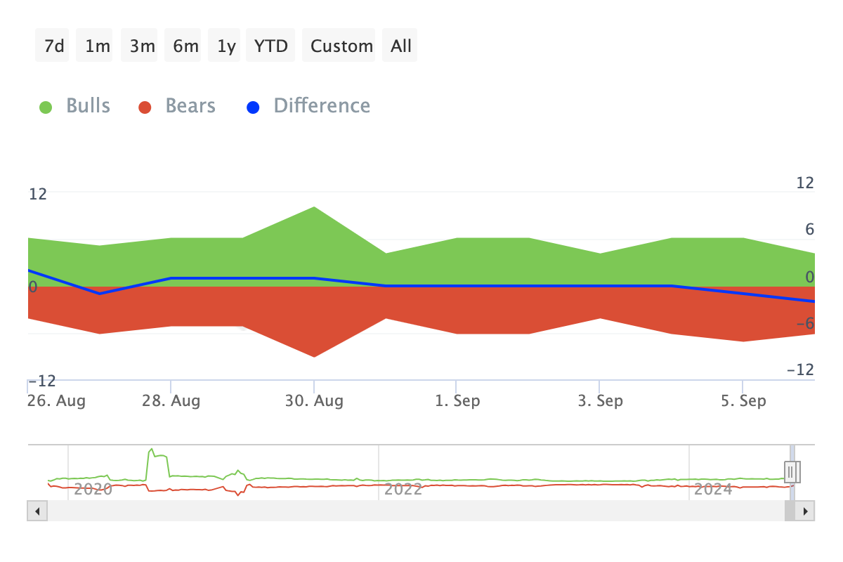 يشير العدد الأكبر من الثيران عادةً إلى احتمال زيادة الأسعار، في حين يؤدي العدد الأكبر من الدببة غالبًا إلى انخفاضات متسارعة في الأسعار. وفي حالة Toncoin، يشير ارتفاع الدببة على الثيران في آخر 24 ساعة إلى أن الاتجاه الصعودي الأخير قد يقترب من نهايته.