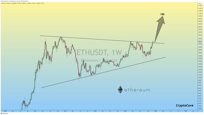 إذا كانت هذه الخطوة مستدامة، فقد أشار المحلل إلى أن إيثريوم قد تواجه هدفًا محتملًا على المدى المتوسط بقيمة ١٠٠٠٠ دولار.