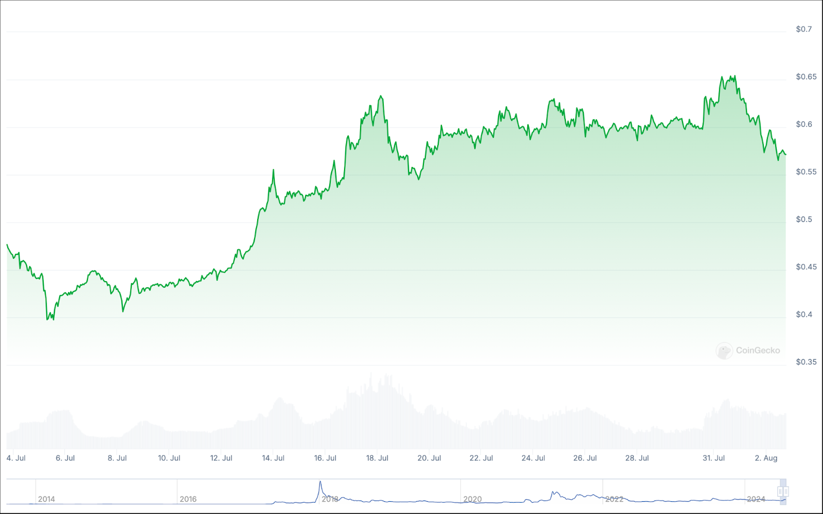 في حين أن هذه ليست أخبارًا جيدة للمستثمرين في XRP على المدى الطويل، فإن المتداولين على المدى القصير سوف يسعدون بتحقيق نمو مزدوج الرقم، حيث حققت العملة المشفرة مكاسب تزيد عن 16% طوال شهر يوليو.