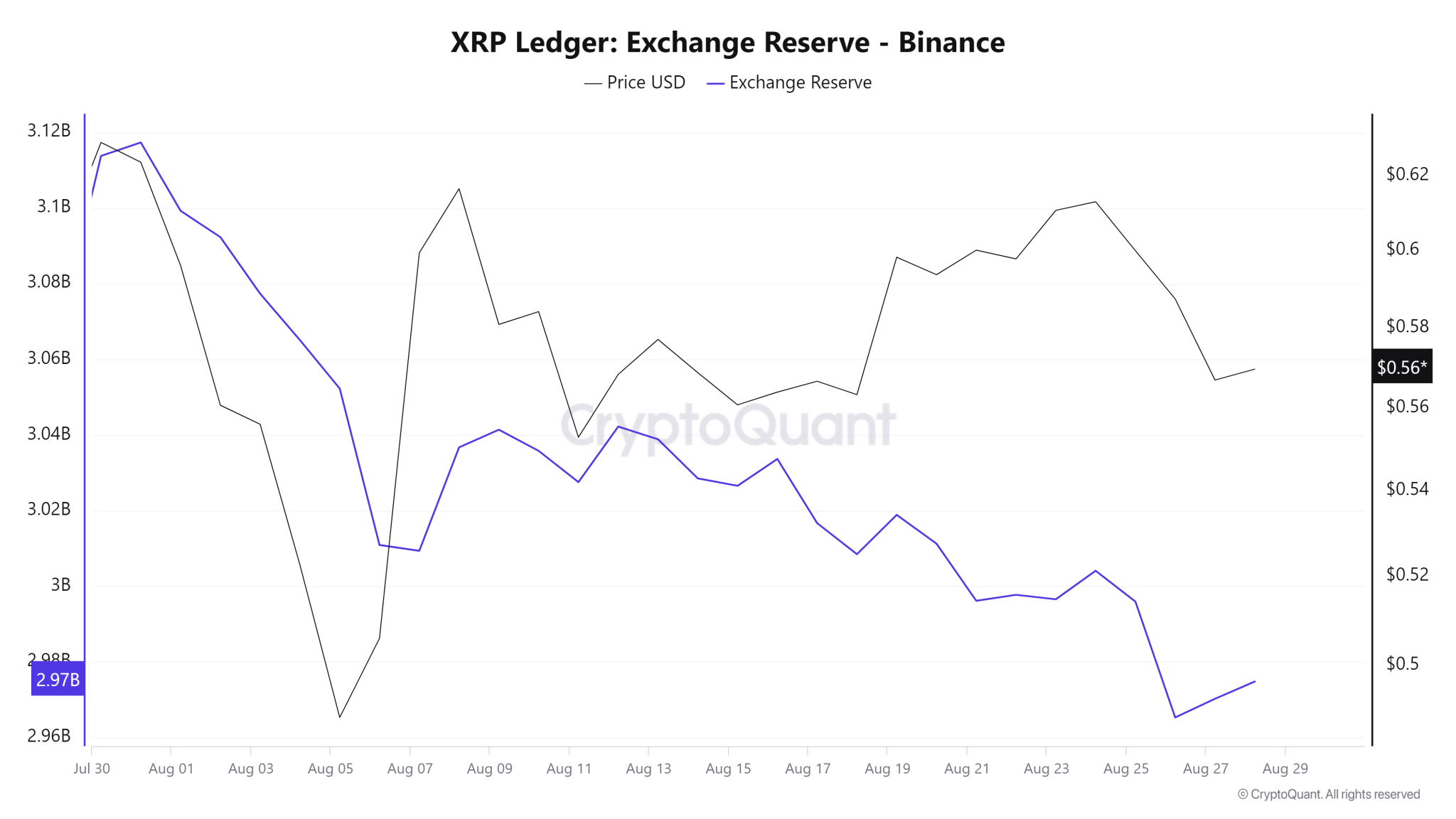 من ناحية أخرى، ظل احتياطي البورصة يتراجع باستمرار على مدار الأشهر الماضية، وفقًا لشركة التحليلات على السلسلة CryptoQuant. ومع استمرار انخفاض احتياطي XRP، فإن هذا يشير إلى تراكم محتمل من قبل الحيتان والمؤسسات، مما يشير إلى علامة صعودية.