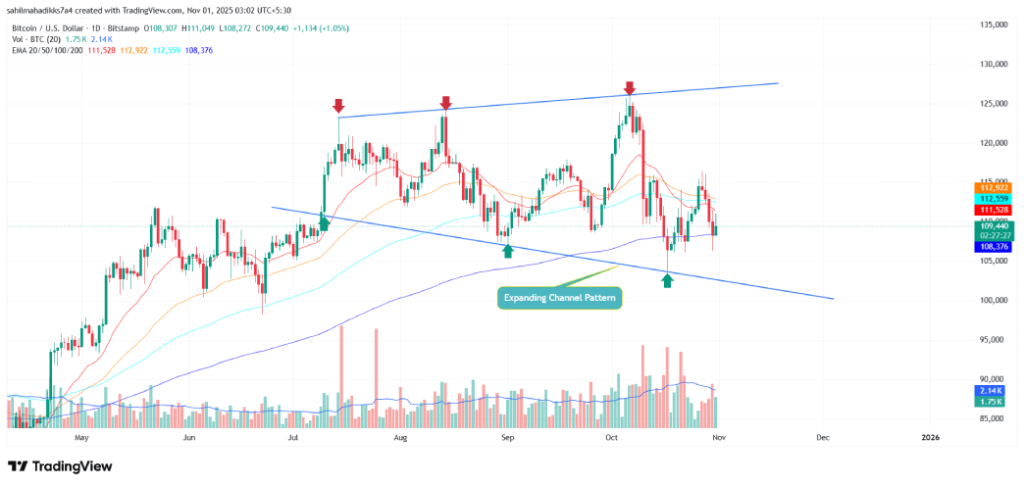• يقود سعر البيتكوين اتجاهًا جانبيًا متوسط ​​المدى مع نمط قناة متوسع.
