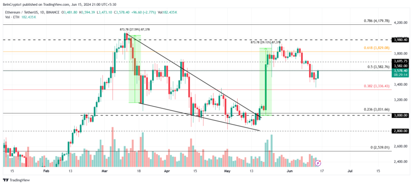 يواجه سعر إيثريوم، الذي يتم تداوله عند 3,578 دولارًا، مقاومة من مستوى تصحيح فيبوناتشي 50٪. مع تزايد الاتجاه الهبوطي للمستثمرين، يمكن أن تصبح هذه المقاومة أقوى، مما يجبر ETH على فشل الاختراق.