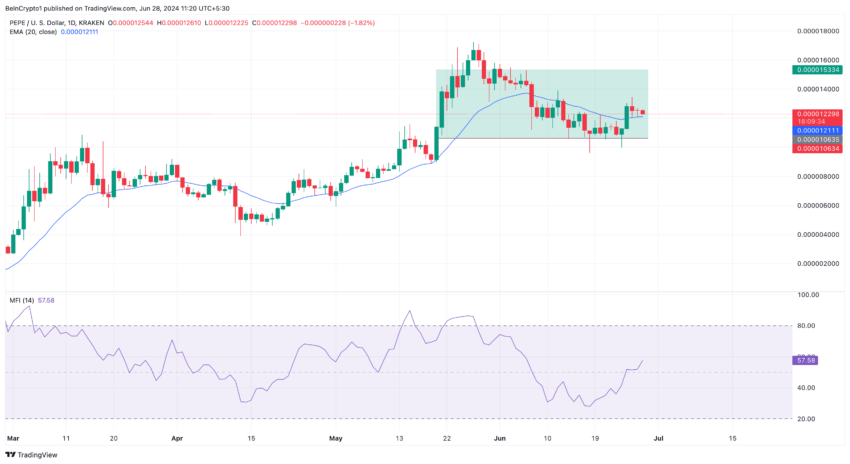 علاوة على ذلك، يرتفع مؤشر القوة النسبية (RSI)، الذي يقيس الزخم. وإذا استمر هذا، فقد يعيد سهم PEPE اختبار مستوى 0.000015 دولار في يوليو. ومع ذلك، قد يؤدي رفض التوقعات إلى انخفاض القيمة إلى 0.000011 دولار.
