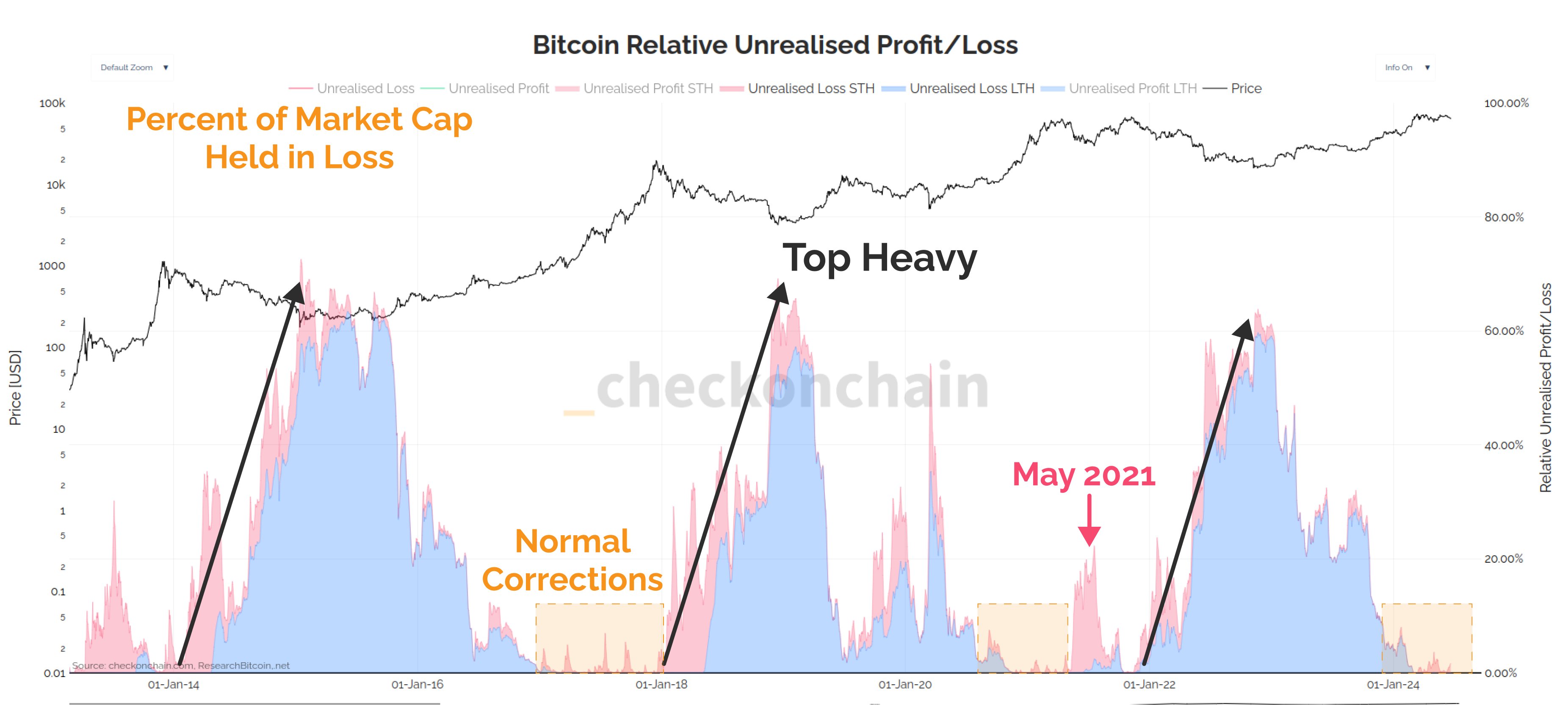 يخبر تاجر العملات المشفرة الذي يحمل اسمًا مستعارًا والمعروف باسم Checkmate متابعيه البالغ عددهم 94,500 على منصة التواصل الاجتماعي X أن المناطق الأكثر ثقلاً تحدث عندما “يشتري عدد كبير جدًا من الأشخاص عددًا كبيرًا جدًا من العملات المعدنية بسعر مرتفع جدًا”.