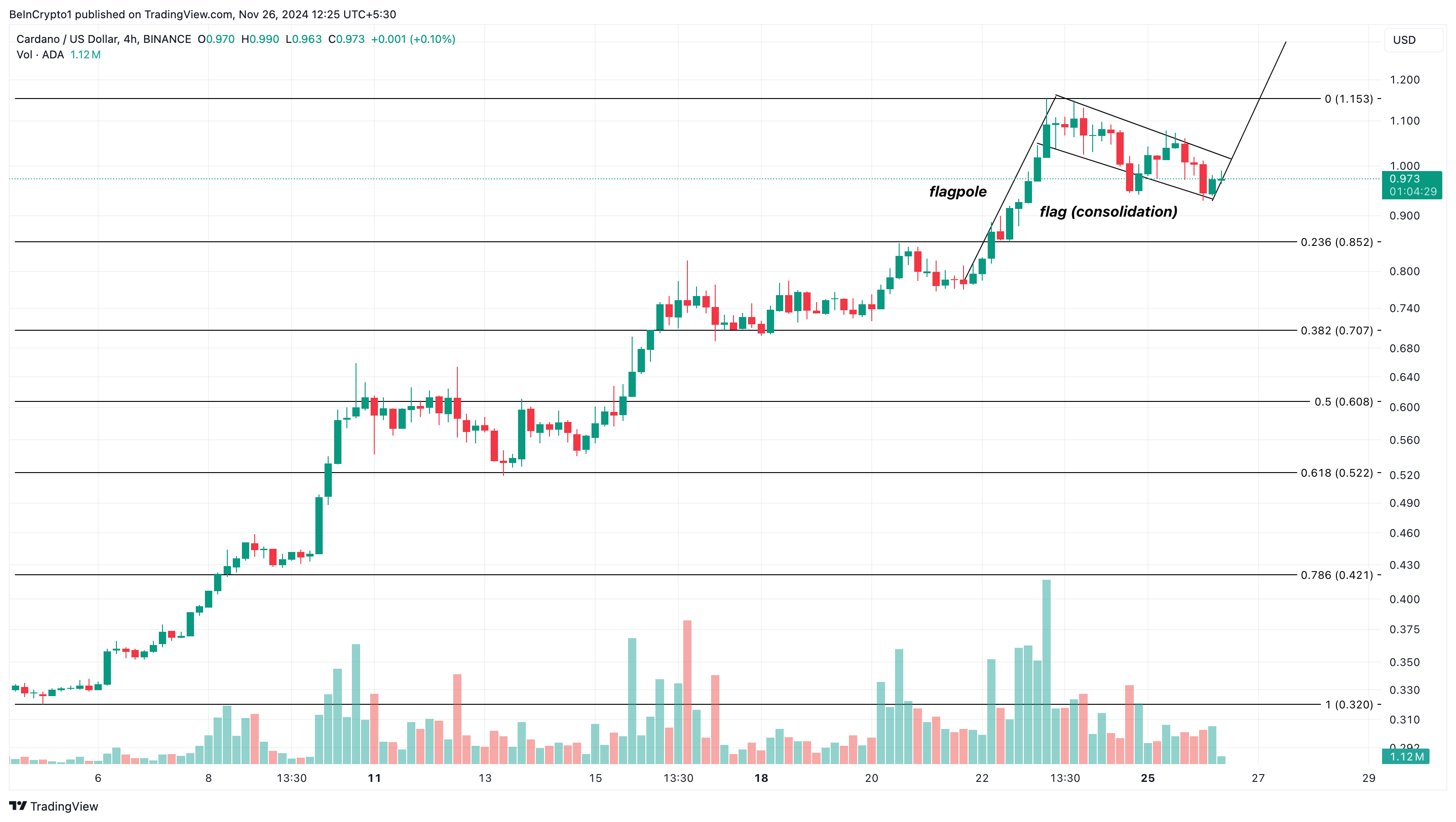 حتى كتابة هذه السطور، يبلغ سعر Cardano 0.98 دولارًا أمريكيًا بعد ارتفاعه في البداية إلى 1.15 دولارًا أمريكيًا مؤخرًا. يمكن ربط هذا الانخفاض الطفيف بانخفاض السوق الأوسع يوم أمس، والذي شهد انخفاض عملة البيتكوين (BTC) إلى ما دون 95000 دولار.