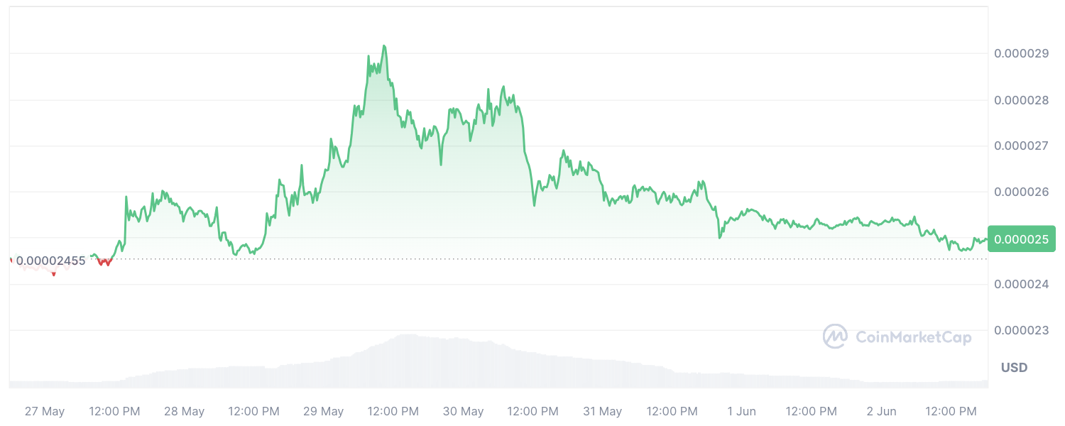 على مدار الشهر ونصف الشهر الماضيين، أظهر سعر SHIB انخفاضًا ملحوظًا في التقلبات، حيث تم تداوله بشكل جانبي في الغالب. على الرغم من ذلك، سجل سعر شيبا إينو مستويات منخفضة أعلى وأعلى، مما يدل على اتجاه صعودي. ويمكن اعتبار هذا علامة إيجابية.