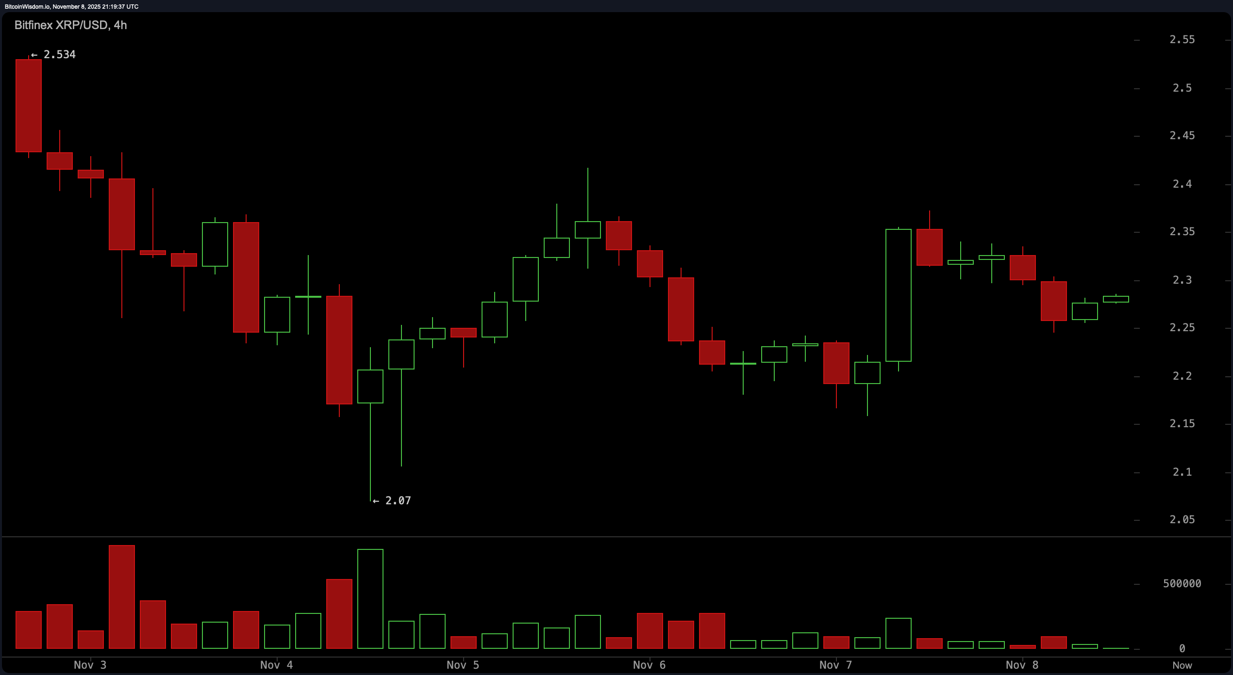 وبالتصغير إلى الرسم البياني لمدة 4 ساعات، يُظهر XRP نبضات قلب باهتة وسط التقلبات. بعد الانخفاض إلى 2.066 دولار – مكتملًا بانخفاض كبير في الفتيل مما يشير إلى الاستيلاء على السيولة – عاد السعر إلى الوراء ولكنه وصل إلى سقف زجاجي حول 2.35 دولارًا – 2.40 دولارًا. يروي الحجم حكاية غريبة: فقد ارتفع بالقرب من أدنى مستوياته ومرة أخرى أثناء الشموع الخضراء، هامسًا بالتراكم الهادئ. ومع ذلك، فإن عدم القدرة على استعادة 2.30 دولار بثقة يشير إلى أن المتداولين يسيرون على رؤوس أصابعهم بدلاً من فرض رسوم. يصرخ هذا الإطار الزمني: محدود النطاق وغير مؤكد، مع سقف صلب عند 2.45 دولار وأرضية هشة عند 2.10 دولار.