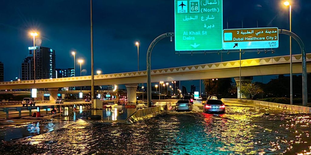 أشرطة فيديو وأظهرت لقطات منشورة على وسائل التواصل الاجتماعي، المياه المتدفقة التي تغطي المدرج وتحول المدرج في مطار دبي إلى نهر أكثر من مهبط طائرات آمن.