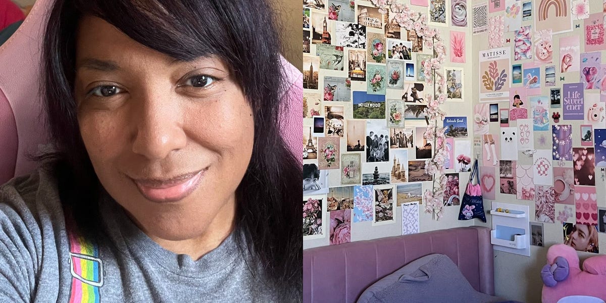 استمر ابني في مشاركة غرفة النوم معنا، ولكن في عيد ميلاده السابع، أحضرنا له سريره الخاص، وهو الأمر الذي كان متحمسًا له. اشترينا أنا وزوجي لأنفسنا هيكل سرير جديد. ثم قمت بتحويل غرفة النوم إلى غرفة أحلامي الأساسية. لقد علقت زهورًا مزيفة وبطاقات بريدية قديمة وإطارات لمجموعات البوب ​​الكورية.