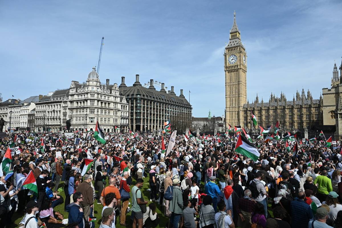 نظمت مسيرة حاشدة في العاصمة البريطانية اليوم السبت، احتجاجا على الهجمات الإسرائيلية والمطالبة بوقف فوري لإطلاق النار في قطاع غزة. بحسب وكالة الأناضول.