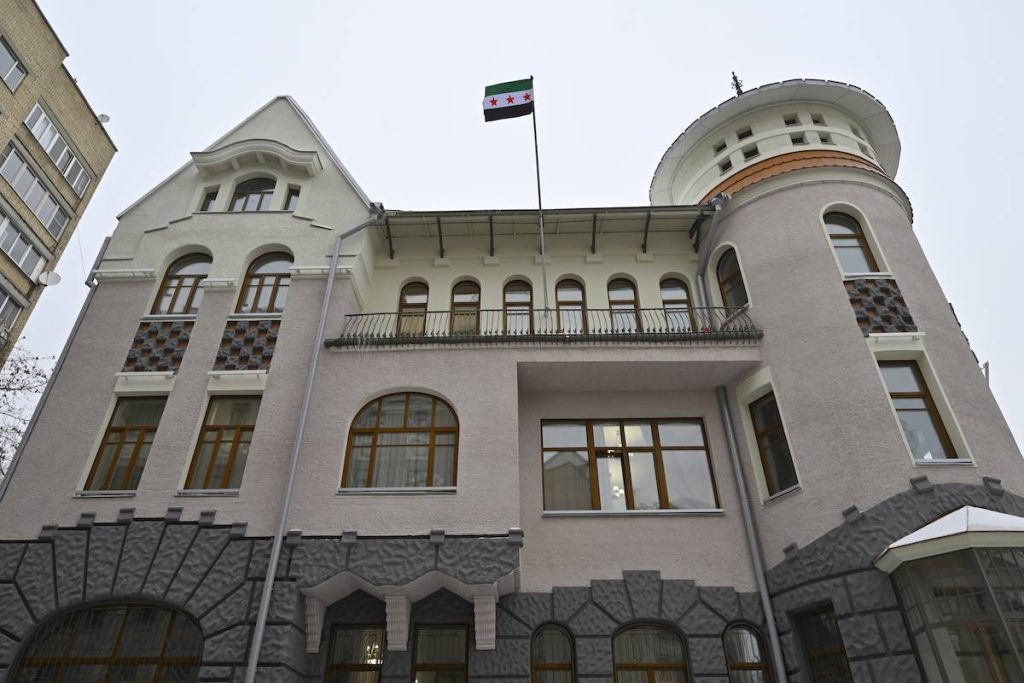 وأظهرت لقطات التقطتها وكالة الأنباء سارية العلم في السفارة السورية في موسكو فارغة بعد سقوط نظام البعث في سوريا. وتم استبدال العلم لاحقاً بـ “علم الثورة” الخاص بالمعارضة السورية.