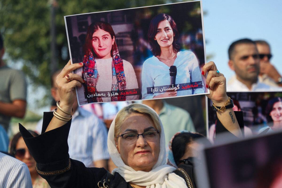 وتجمع العشرات من المتظاهرين في منطقة كردستان العراق، أمس، للاحتجاج على غارة بطائرة بدون طيار أدت إلى مقتل صحفيتين، وهو الهجوم الذي نسبه مسؤولون محليون إلى تركيا.