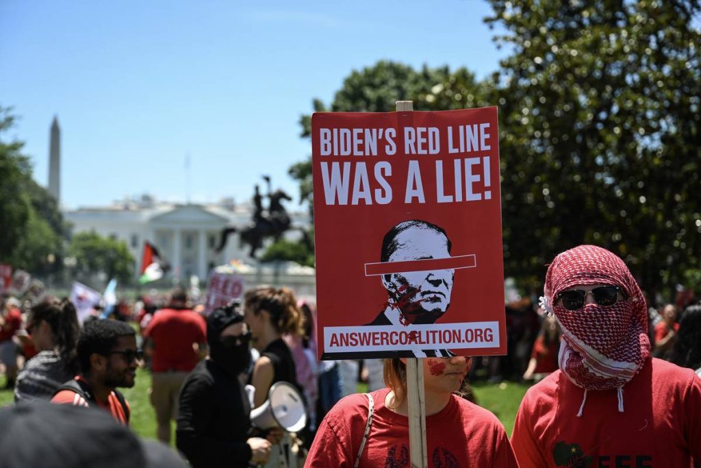 احتج مؤيدو فلسطين منذ شهور على الدعم العسكري والمالي الذي قدمته إدارة بايدن لإسرائيل خلال حربها ضد فلسطين، والتي أسفرت عن مقتل أكثر من 40 ألف فلسطيني في غزة، وفقًا لمسؤولي الصحة في غزة. شنت إسرائيل الهجوم بعد أن هاجمها مقاتلو حماس في 7 أكتوبر، مما أسفر عن مقتل 1200 شخص، وفقًا لإحصاءات إسرائيل.