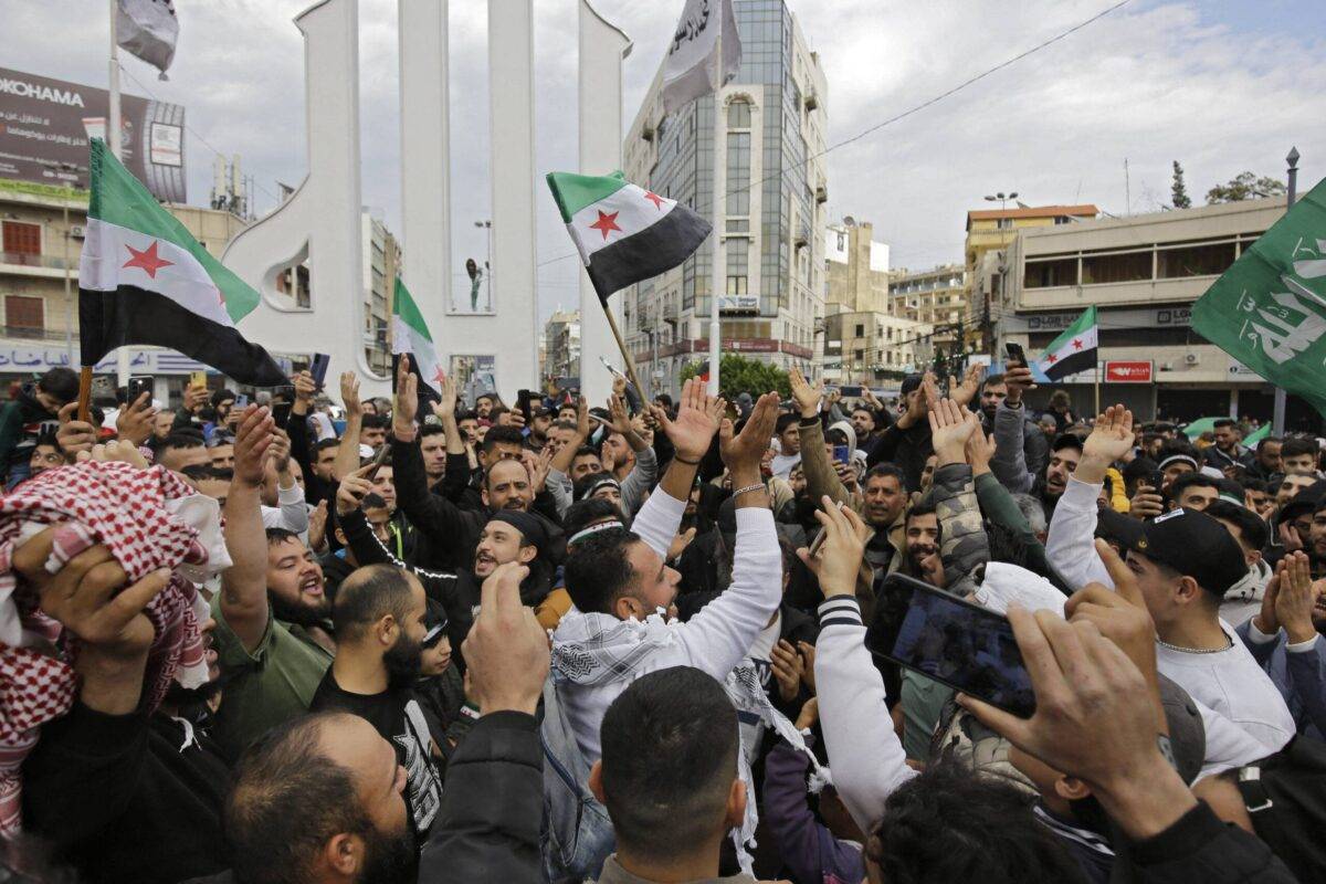 أحيى سكان طرابلس اللبنانية، يوم الأحد، سيطرة الجماعات المسلحة المناهضة للنظام على العاصمة السورية دمشق.