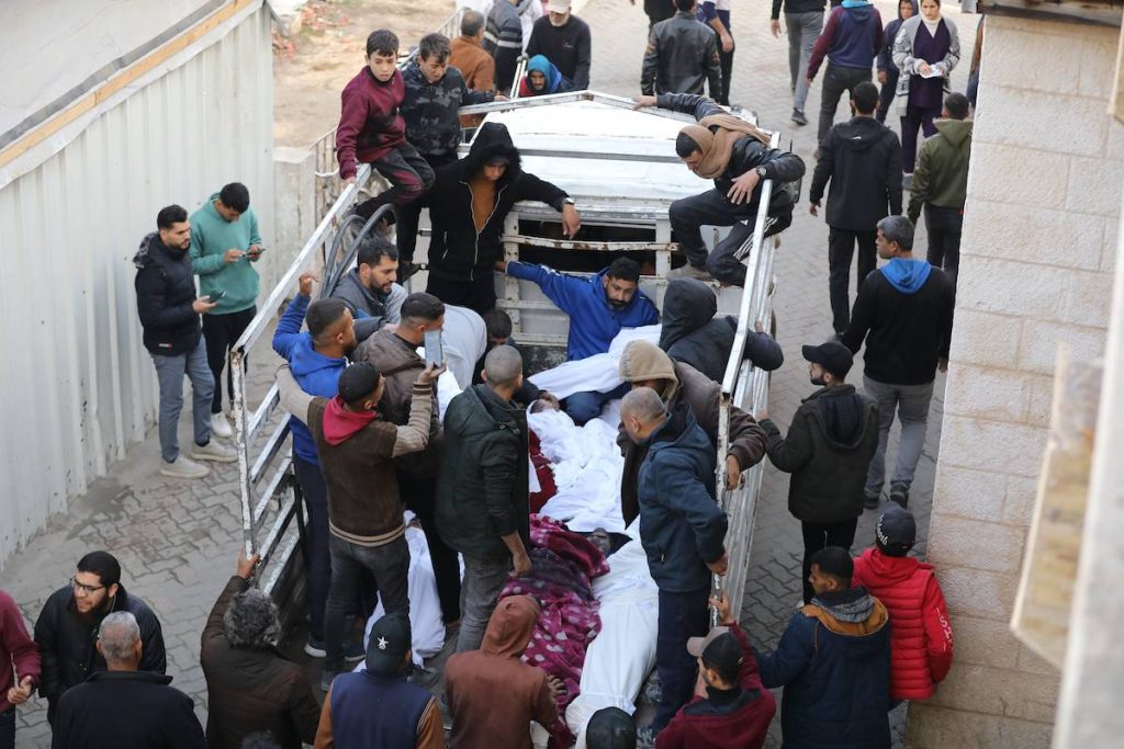 نقل جثث الأطفال الفلسطينيين إلى المستشفى الأهلي المعمدان بعد أن هاجم الجيش الإسرائيلي حي الشجاعية بمدينة غزة بغزة في 04 يناير 2024. (داوود أبو الكاس – وكالة الأناضول)