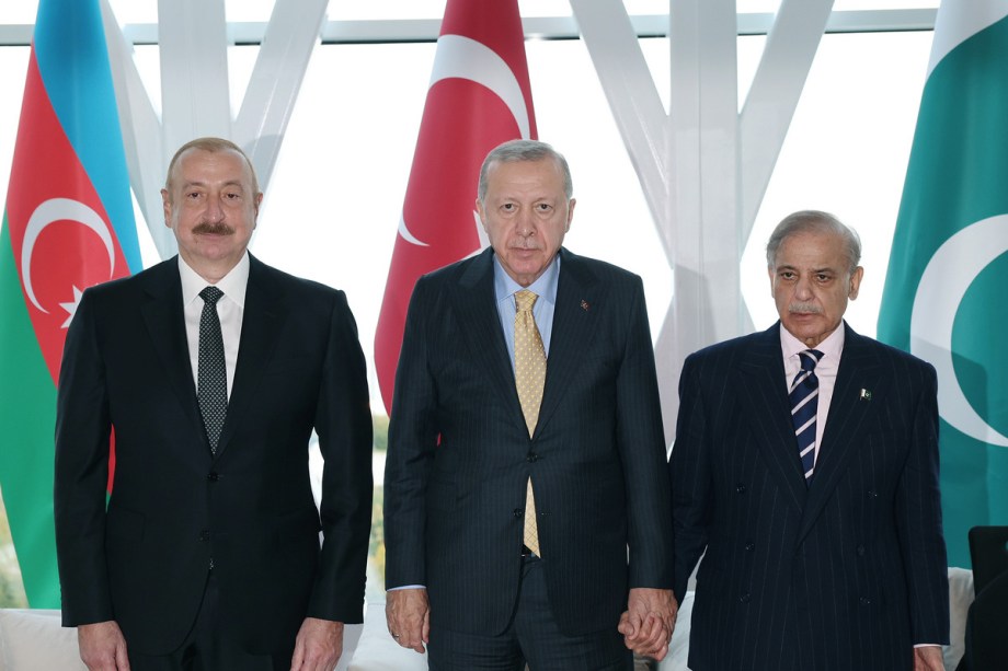 التقى الرئيس التركي رجب طيب أردوغان، السبت، الرئيس الأذربيجاني إلهام علييف ورئيس الوزراء الباكستاني شهباز شريف في باكو، عاصمة أذربيجان. تقارير الأناضول.