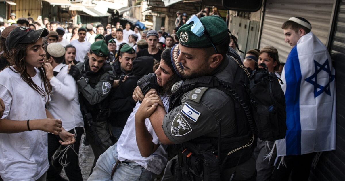 تدفق حشود من الإسرائيليين عبر المدينة القديمة في القدس ، حيث تم تجاهل بعض السكان وألقوا الإهانات في الفلسطينيين ، مع الاحتفالات السنوية لالتقاط إسرائيل من القدس الشرقية يوم الاثنين.