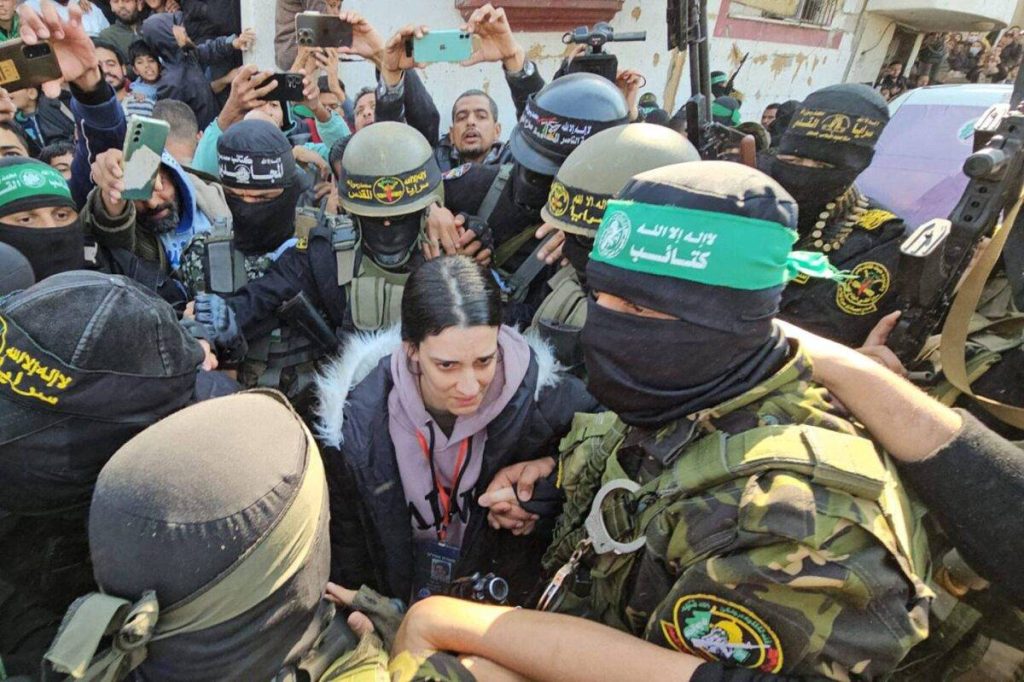 عانق جادي موسى ، 80 عامًا ، وأربيل ياهود ، 29 عامًا ، بعضهما البعض في مقطع فيديو أصدرته حليف حماس الإسلامي. من المتوقع أن يتم تسليمهم في موقع آخر ، في خان يونس في جنوب غزة.