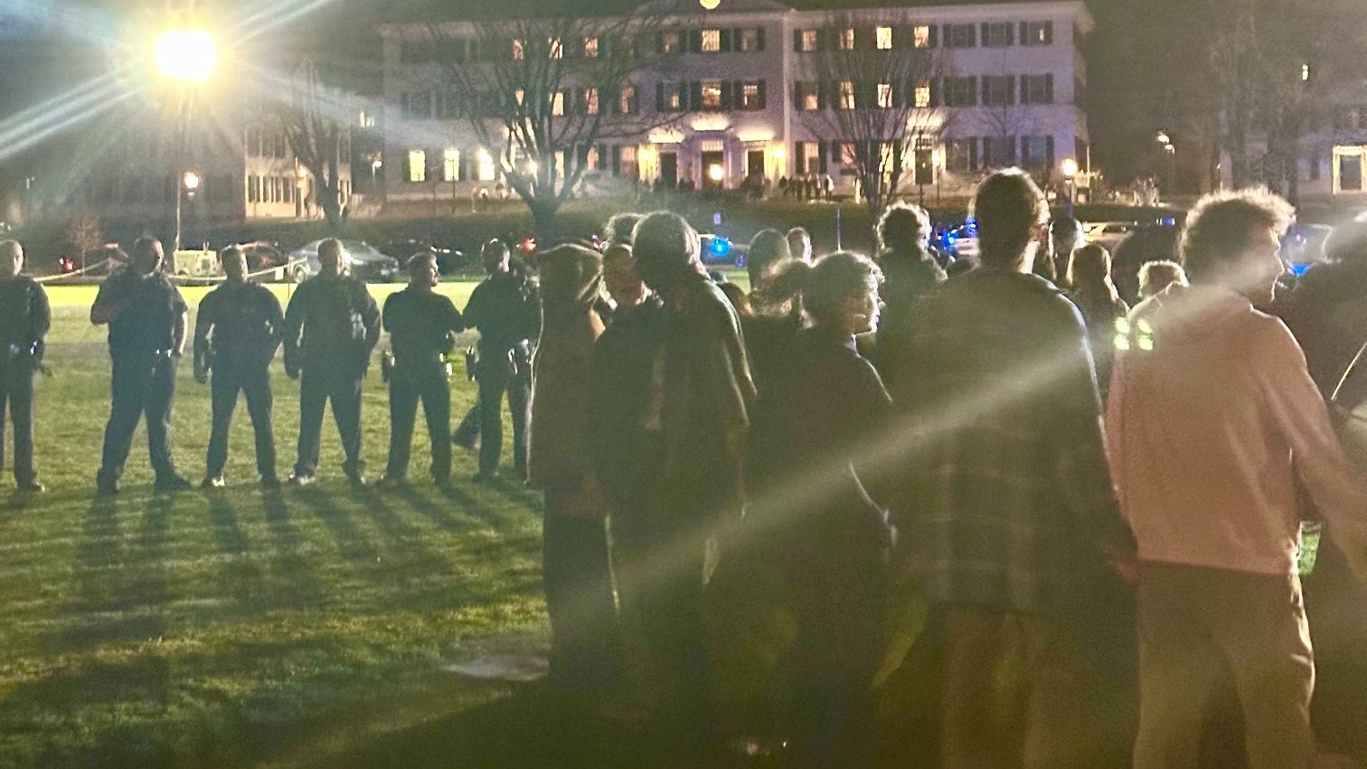 بعد حوالي ساعتين من الاحتجاج، ذكرت صحيفة الكلية أن قوات ولاية نيو هامبشاير وشرطة الولاية، بما في ذلك شرطة مكافحة الشغب، والشرطة المحلية كانت حاضرة عندما بدأت الاعتقالات وأزيلت الخيام.