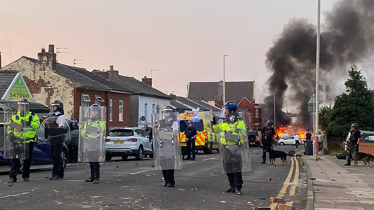 وبعد وقت قصير من بدء أعمال العنف، قال الزعيم اليميني المتطرف تومي روبنسون إن تصرفات الغوغاء العنيفة “مبررة” وقال إنها مدفوعة بمخاوف بشأن الهجرة.