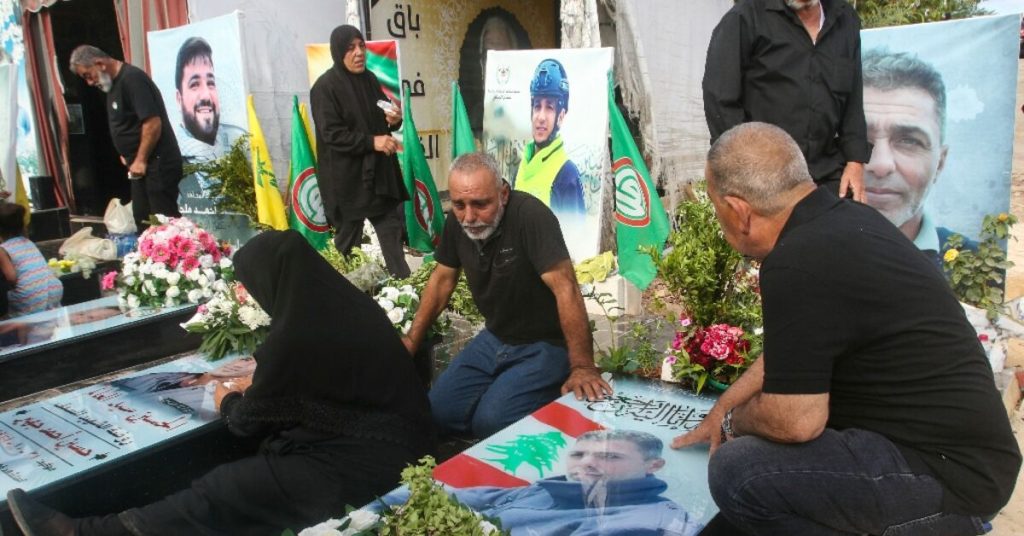وحلقت أعلام حزب الله الصفراء والأعلام الخضراء التابعة لحركة أمل، حليفة الجماعة، فوق المقبرة التي أنشئت مؤخرا بالقرب من البحر، والتي تقع على مرمى حجر من مقر قوات حفظ السلام التابعة للأمم المتحدة.