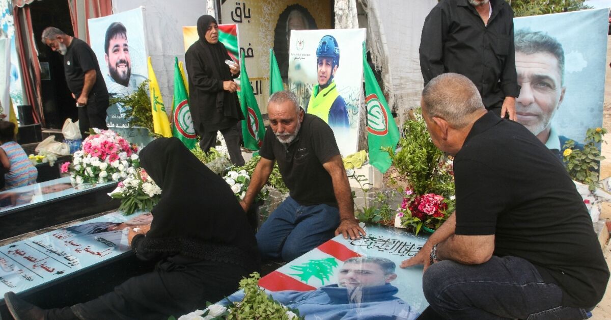 وفي المقبرة، قامت نساء يرتدين الشادور الأسود بمواساة بعضهن البعض عند المقابر الجديدة اللامعة المزينة بالورود وصور كبيرة للموتى، بما في ذلك مقاتلي حزب الله.